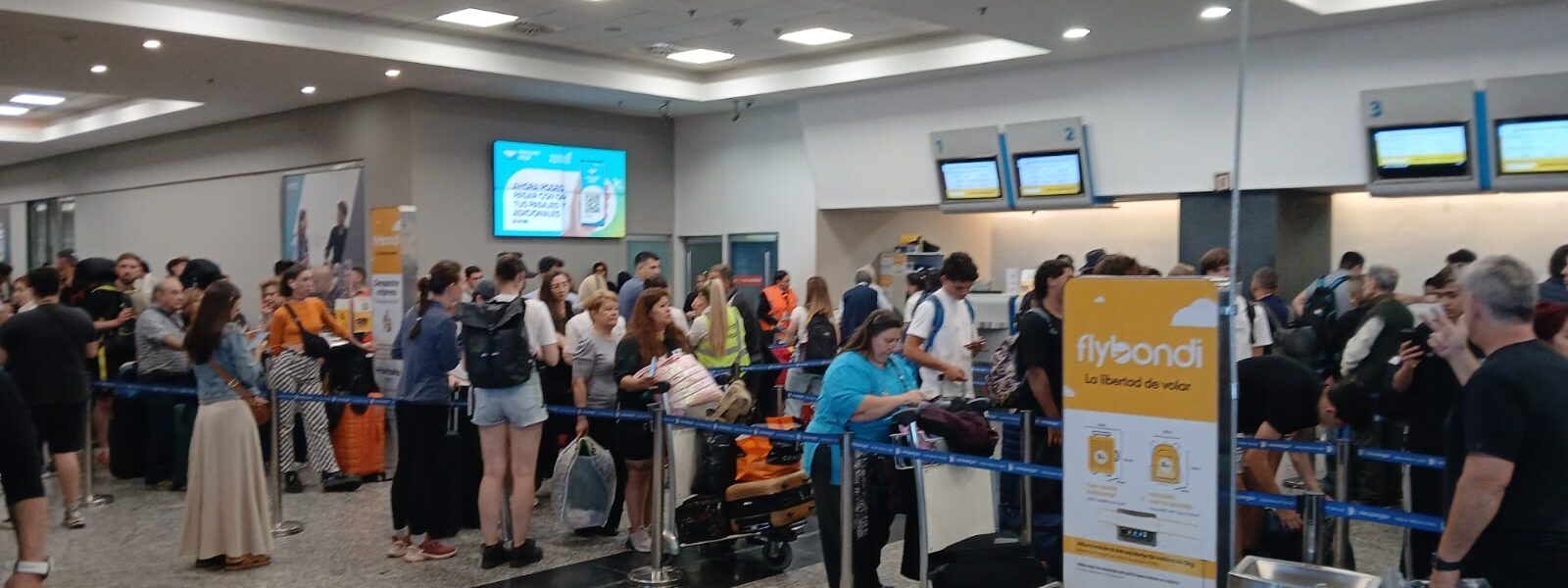 - 02Flybondi ¡UNA LOCURA! cancelo 19 vuelos opero con 3 aviones LV de 13. En Bariloche sus pasajeros protestaron en los mostradores de Aerolíneas Arg. VIDEO
