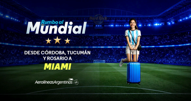 Aerolíneas Argentinas anuncia el lanzamiento de nuevos vuelos internacionales desde el interior del país con motivo del próximo Mundial de Fútbol, que conectarán a las ciudades de Córdoba, Rosario y Tucumán con Miami a partir del 8 de junio.