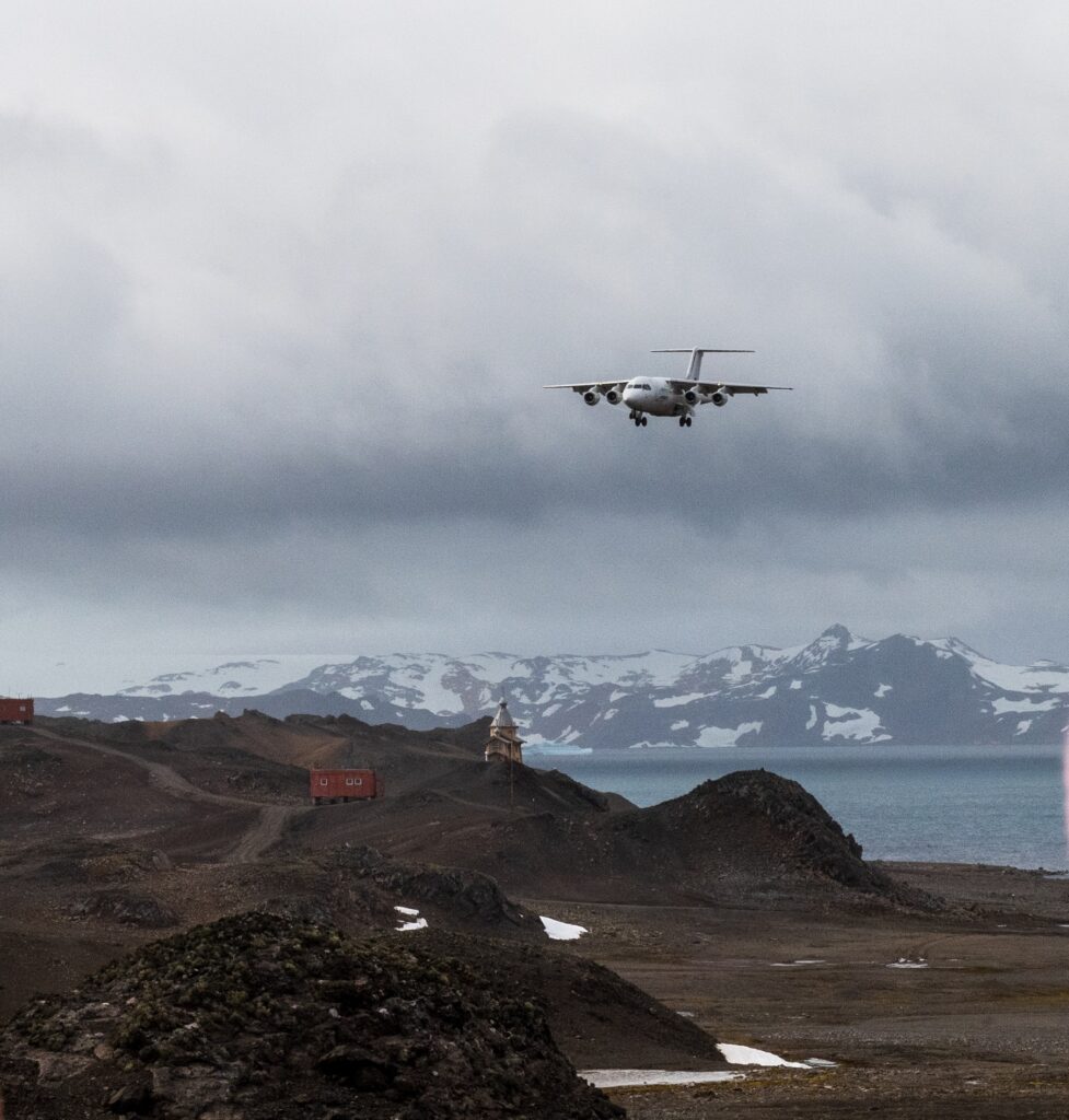 El tour comienza a primera hora del día en el aeropuerto de Punta Arenas, desde donde despega el vuelo que cruza el mítico pasaje de Drake. Tras aproximadamente dos horas de travesía, el avión aterriza en la base Presidente Frei de la isla Rey Jorge (King George Island), que alberga instalaciones científicas de diversos países.