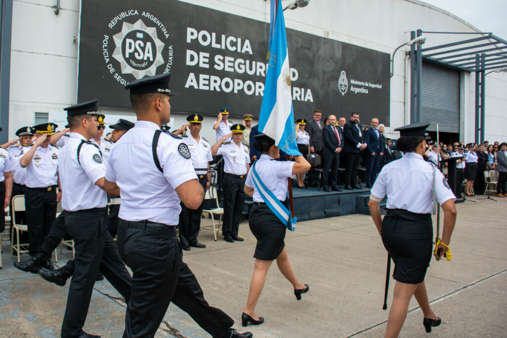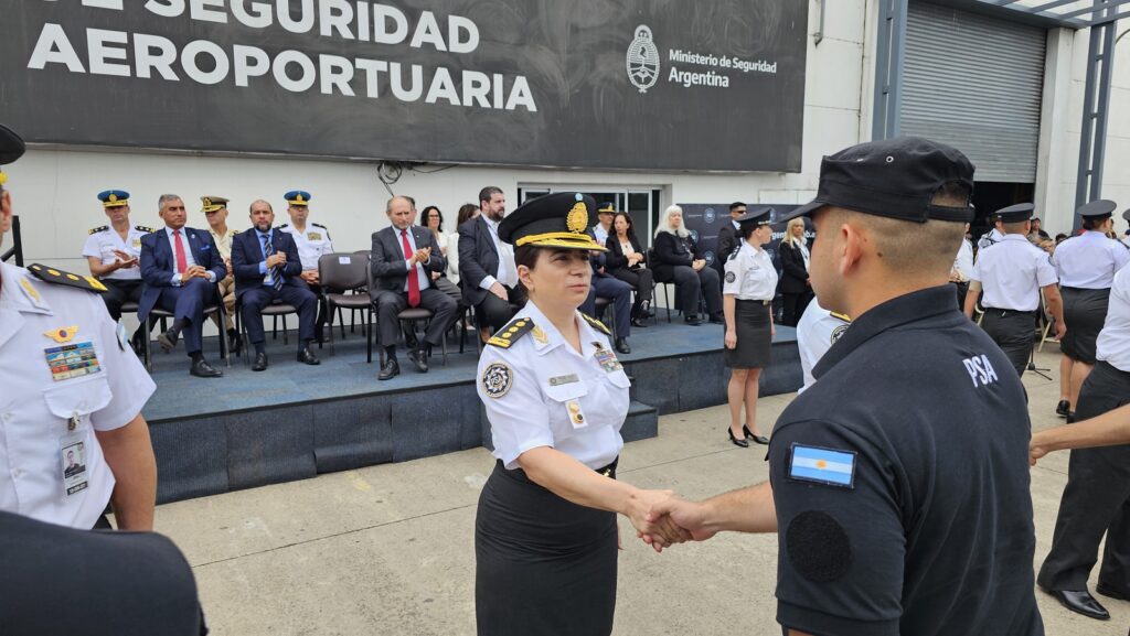 El momento más significativo de la jornada se vivió cuando los flamantes oficiales cambiaron el escudo de cadete por el de la Policía de Seguridad Aeroportuaria, simbolizando así su incorporación definitiva a la estructura operativa de la fuerza.