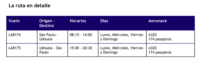 “Estamos entusiasmados de conectar directamente São Paulo, uno de los mercados emisores de turismo más importantes para Argentina, con Ushuaia justo a tiempo para la temporada de nieve y con más de 12.500 asientos disponibles para estos dos meses”, afirmó Florencia Scardaccione, Gerente Comercial de LATAM en Argentina. “Cada nuevo vuelo genera más oportunidades: más visitantes, más consumo local y más trabajo para los argentinos.”