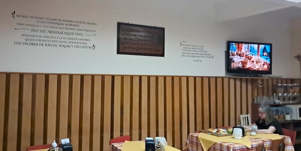 En 2011, cuando la familia asumió plenamente la conducción del hotel tras el retiro de un tío, el cuadro seguía allí. Muchos huéspedes preguntaban qué decía ese texto en alemán. Alejandro conocía la historia que le había contado su abuelo, pero no sabía cuál era la traducción literal: el idioma estaba escrito en un dialecto antiguo, propio de una región que luego sufrió profundas transformaciones históricas.