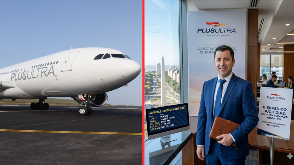 A solo un mes de comenzar sus vuelos regulares en la ruta Madrid/Buenos Aires/Madrid, Plus Ultra Líneas Aéreas designo como Country Manager para Argentina a Hugo Diaz. La compañía prestara servicio con aviones Airbus 330-200 convirtiéndose en el cuarto operador de esta ruta.