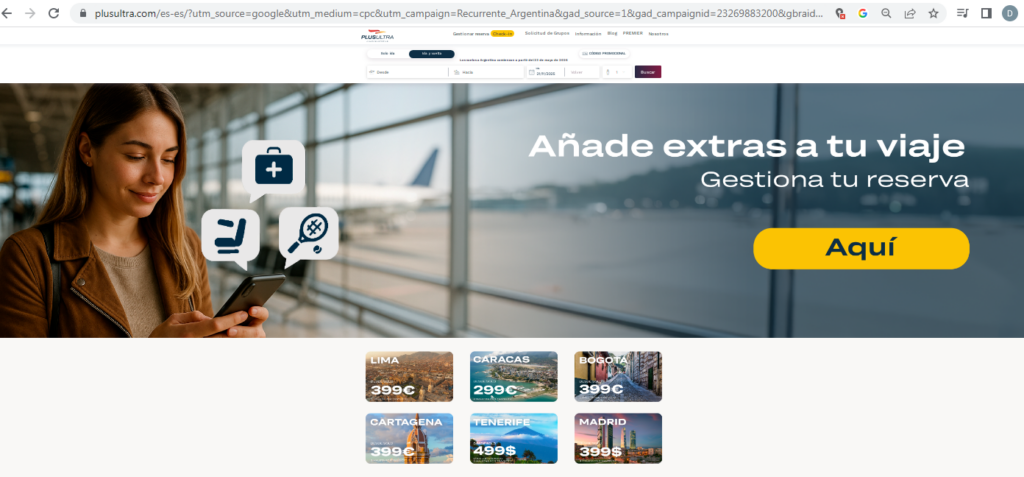 Según el requerimiento la empresa de bandera española PLUS ULTRA LINEAS AEREAS S.A solicito la autorización para explotar servicios regulares y no regulares internacionales de transporte aéreo de pasajeros y cargas. Desde la Secretaria de Transporte informaron que los vuelos comenzarían en mayo del 2026. La ruta se anuncia pero no se promociona aun en el sitio oficial Plus Ultra.