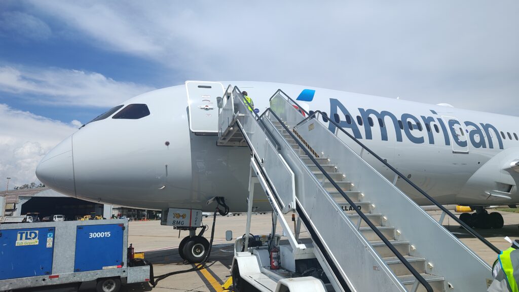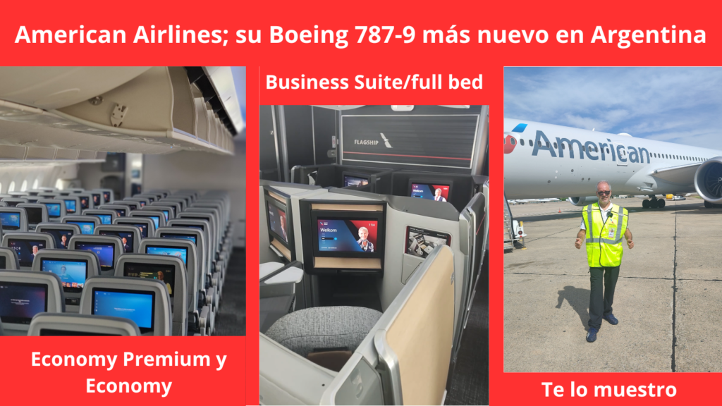 American opera el Boeing 787 desde el año 2015, aunque el guion 9 del modelo comenzó a ser operado en la ruta Buenos Aires-Dallas a partir de octubre de este año, se trata de un vuelo de unas 10hs de duración o un poco más.